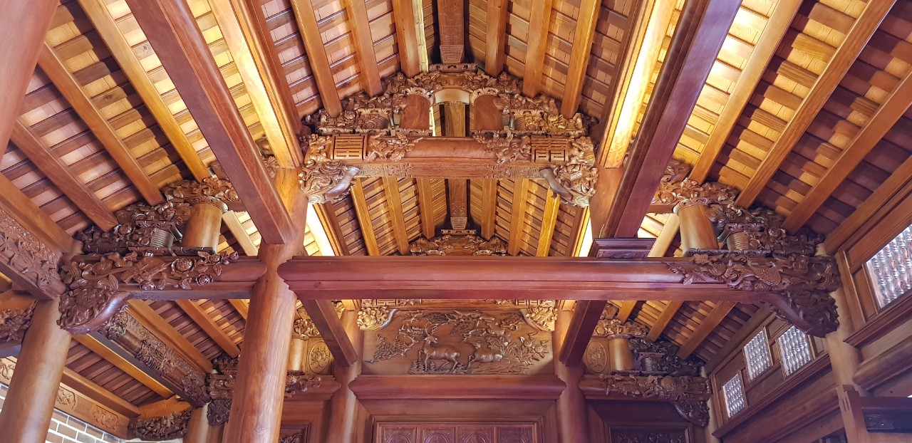 Những cấu kiện gỗ, hoa văn đục trạm tinh sảo, hay những hoa văn trên cấu kiện bê tông mềm mại được thể hiện khéo léo qua bàn tay người nghệ nhân, người thợ giỏi đều dành cho Gia Chủ. Vẻ đẹp trong công trình tâm linh, nét mộc mạc trong ngôi nhà sẽ trường tồn – mãi về sau cho Dòng họ và con cháu sau này.